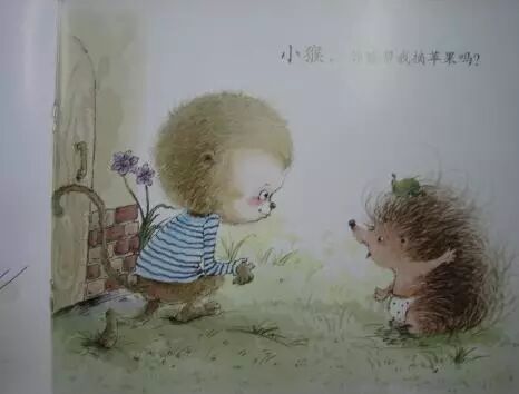 小猴抚摸着被刺痛的地方,说:“你说‘对不起’就好了,我现在还痛得很呢,我不和你交朋友了!”